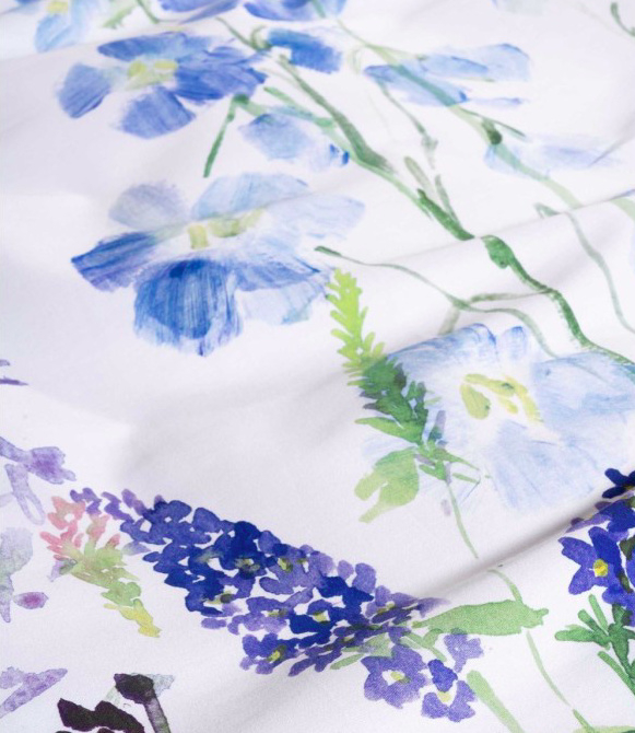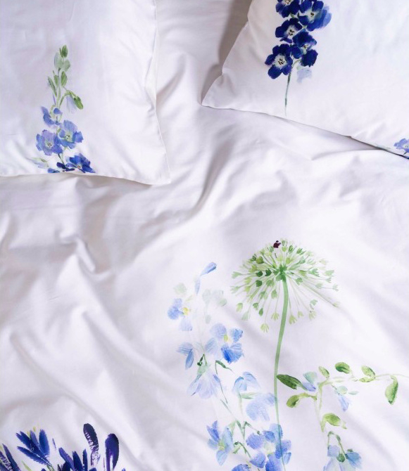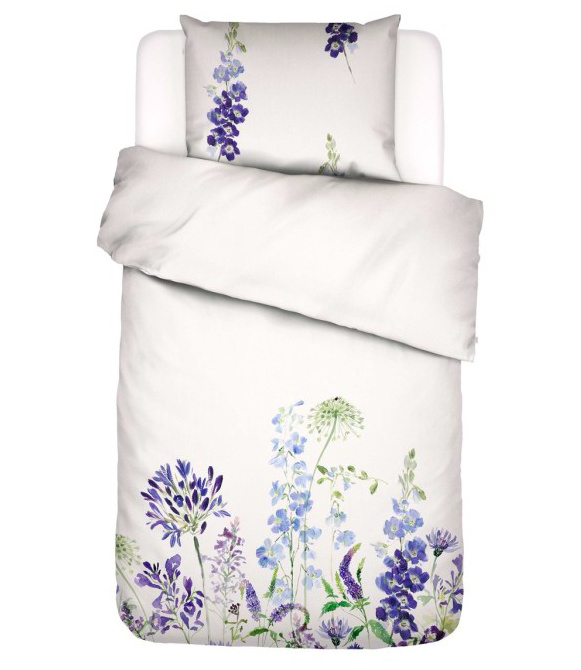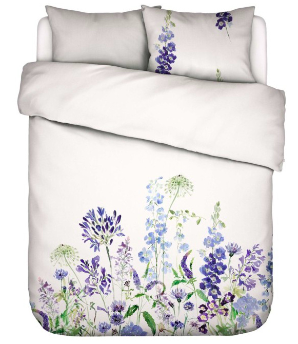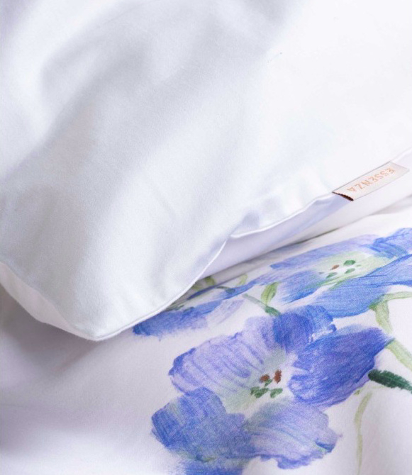 OverzichtHaal de rust van een aquarelschilderij naar je slaapkamer met dekbedovertrek Lavinea van Essenza. Dit verfijnde dessin toont een losse bloemencompositie in verschillende blauwtinten, subtiel weergegeven op een frisse witte achtergrond. De bloemen lijken met de hand geschilderd en geven het geheel een zachte, kunstzinnige uitstraling.